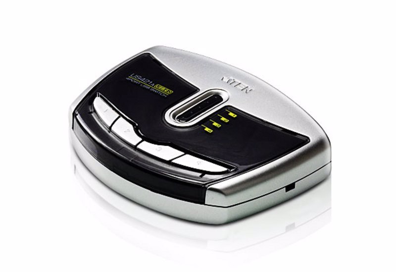 The US421A is a 4-port USB 2.0 Peripheral Switch that allows up to 4 computers to share the use of a single USB peripheral device (such as a printer, scanner, mass storage drive, etc.) on a one-at-a-time basis.